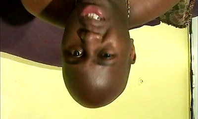 Ebony bear and white brunette babe fuck hardcore on the sofa